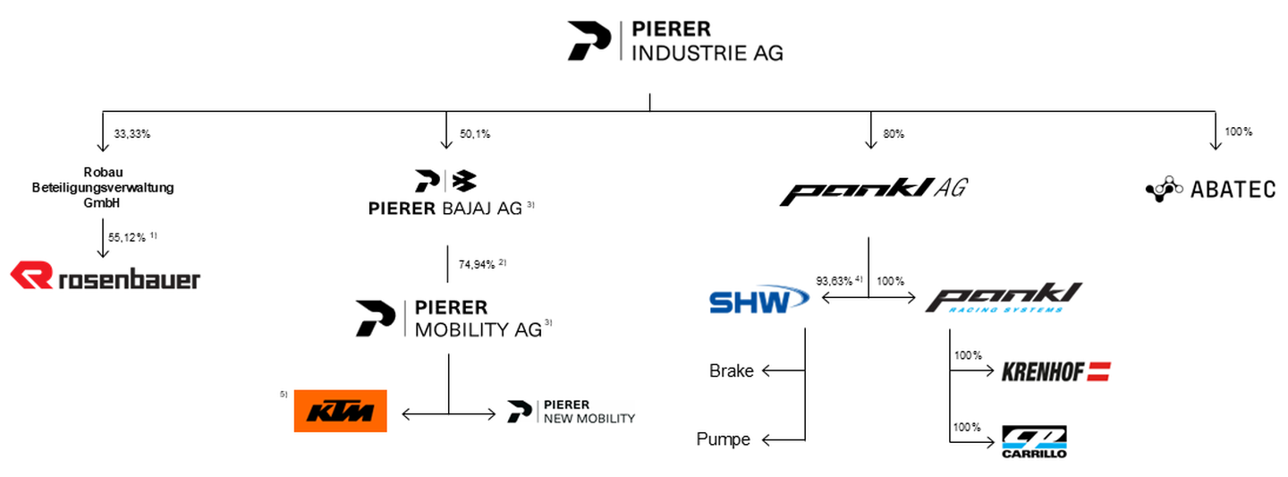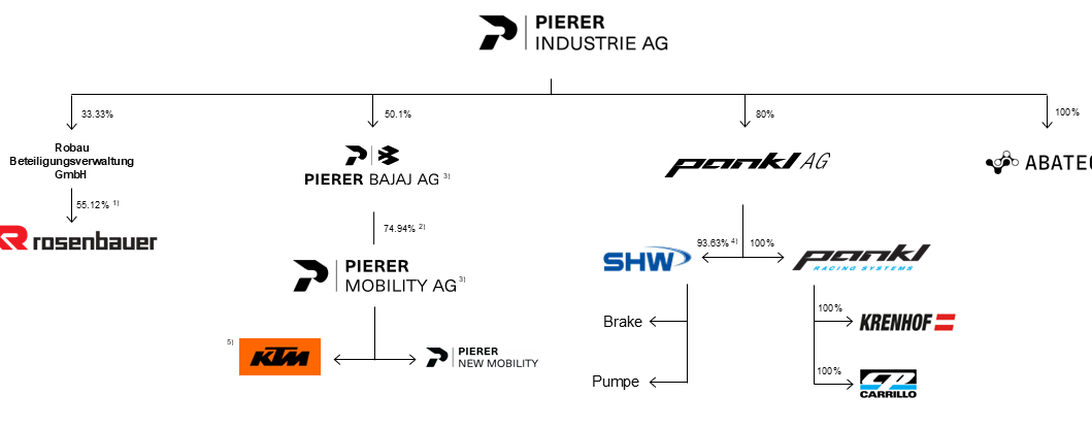 100 % shareholdings: KTM AG, Pierer New Mobility GmbH, PIERER E-Commerce GmbH, Avocodo GmbH, Platin 1483. GmbH